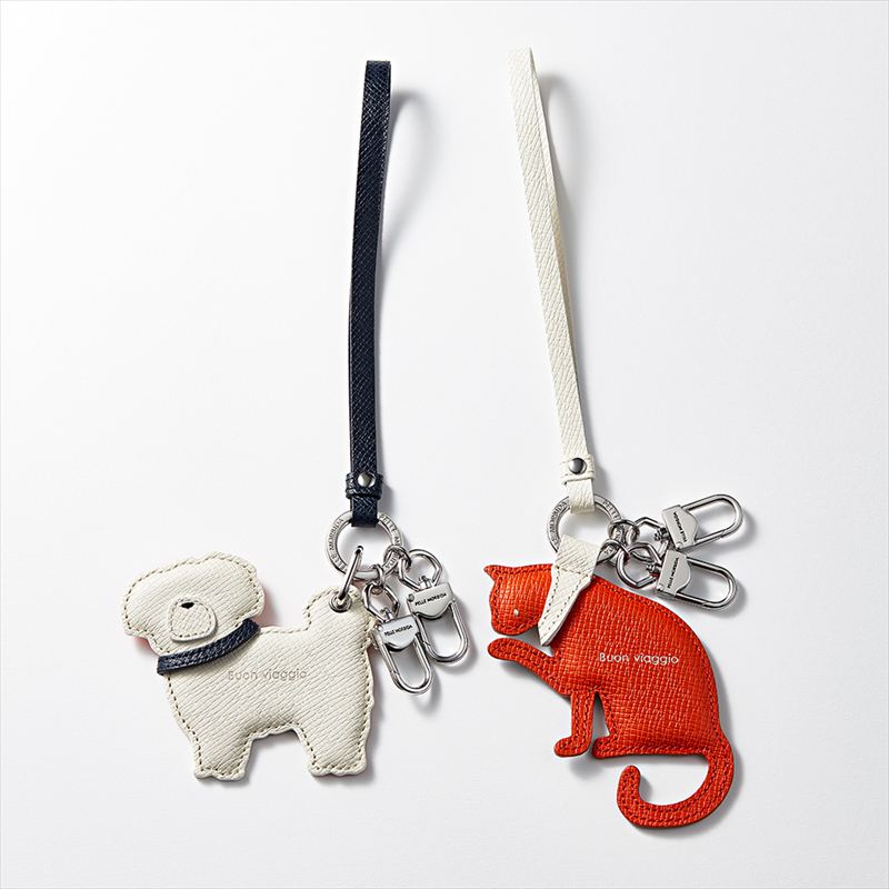 神秘的な力で良天候へ変えてくれると信じられてきた猫が着想源の船上の“船乗り猫”モチーフと、犬の貴族と呼ばれたマルチーズをモチーフにした2種のチャーム。(レザーストラップ、キーチャームとしても使える金具付き。)