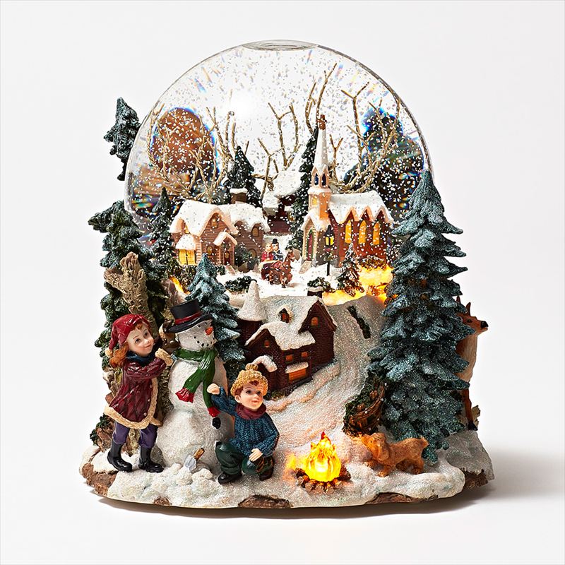 見ているだけで楽しい気分になるスノードーム。背面のボタンを押すと、スノーが自動で舞い、焚火が灯り、それに合わせてドーム内を照らすライトアップ機能付き。※「Leise rieselt der Schnee」のオルゴール内蔵。