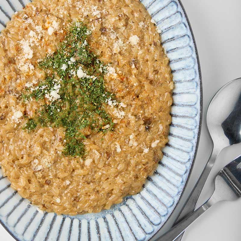 「GOOVI」オリジナルの日本産素材である和紙とラムズウールのよさをブレンドした、美しい発色とバルキー性に優れたニット。和紙の通気性・吸水速乾性・軽さと、ウールならではの保温性を兼ね備えたストレスフリーな着心地が魅力。